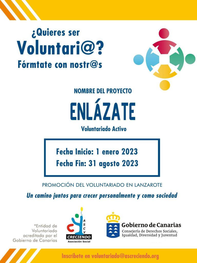 A continuación, vas a iniciar nuestro itinerario online para personas voluntarias que se enmarca dentro de nuestro Proyecto Enlázate, posible gracias a la subvención para ejecución en las áreas de mayores, inmigración, voluntariado e inclusión social.